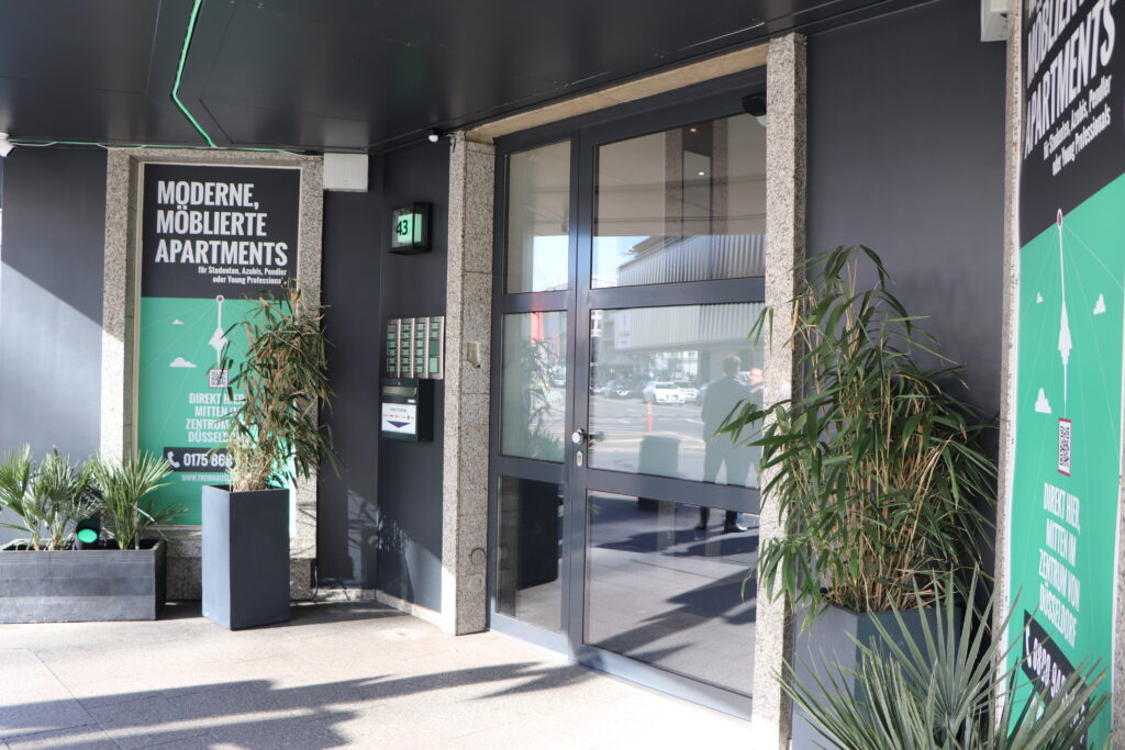 Direkt nebenan in der Graf-Adolf-Straße 41 erweitert sich das Angebot noch einmal deutlich. Dort stehen moderne Büroflächen, ein Co-Working-Space und ein Podcast-Studio zur Verfügung, die ebenfalls angemietet werden können. So verbindet der Standort attraktives Wohnen mit flexiblen Arbeitsmöglichkeiten mitten in Düsseldorf.